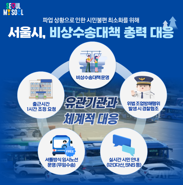 - 지하철 및 택시 증편: 서울시는 비상수송대책본부를 가동해 지하철 운행 횟수를 늘리고 막차 시간을 연장할 계획입니다.