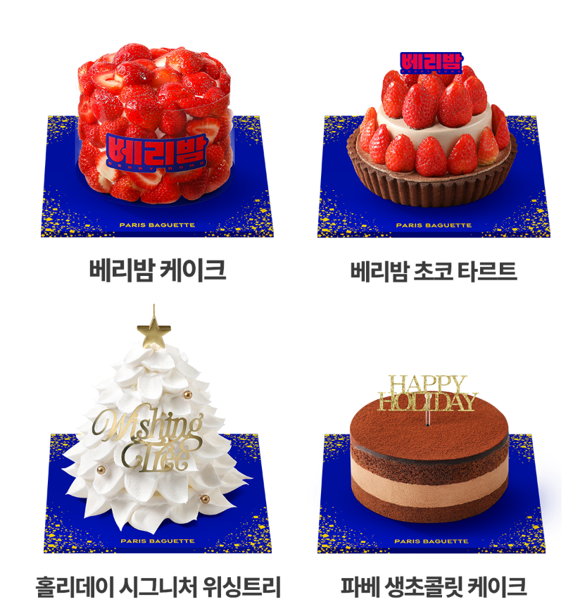 파리바게뜨 크리스마스케이크는 크게 네 가지 유형으로 구성됐습니다.